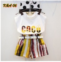 เสื้อกล้าม+กางเกงเอวสูงลาย+เข็มขัด
